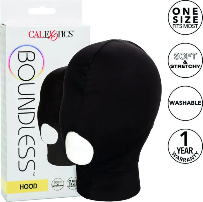 Vizuální omezení a intenzivní prožitky jsou na dosah s maskou Boundless Hood od CalExotics. Tato maska nabízí otevřený design pro snadné dýchání a je vyrobena z měkkého a elastického materiálu, což zajišťuje pohodlí během nošení. Stimuluje smysly a vytváří vzrušující atmosféru pro všechny, kteří chtějí prozkoumat nové zážitky.