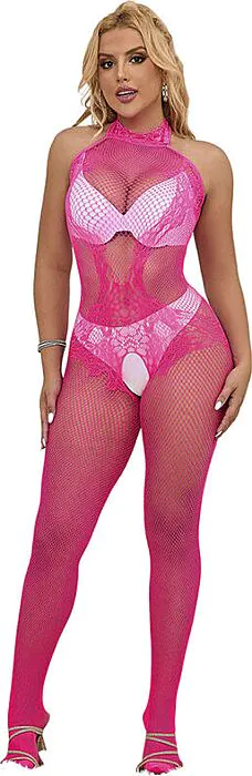 Zvyšte svou sensualitu s tímto růžovým krajkovým bodystockingem, který se přizpůsobí vaší postavě. Jeho design s vysokým límcem dodává nádech elegance, zatímco materiál (88% nylon, 12% spandex) poskytuje pohodlí a flexibilitu při každém pohybu.