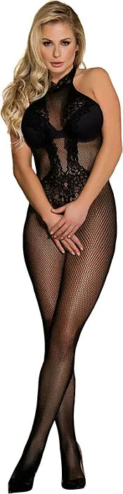 Bodystocking SUBBLIME - Crotchless z síťoviny a krajky