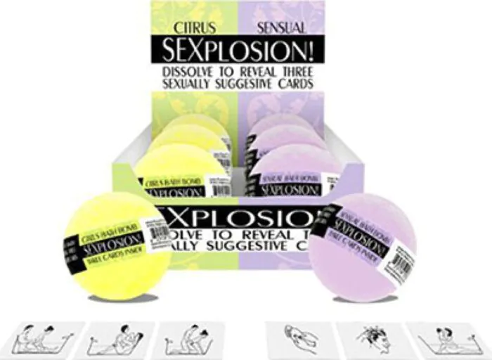 Bomba do koupele s efektem šumění a přidruženými sexuálními kartičkami. Ideální pro páry hledající zábavné a smyslné chvíle ve vaně.