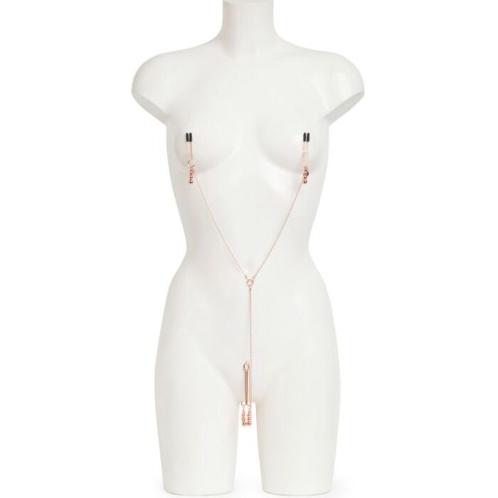 Intenzivní stimulace bradavek a klitorisu s řetězy Cincuenta sombras liberadas přináší příjemné vzrušení. Kvalitní kov a silikon zajišťují efektivní tlak na citlivé oblasti. Nastavitelný design umožňuje pohodlné nošení pro různé typy postavy.