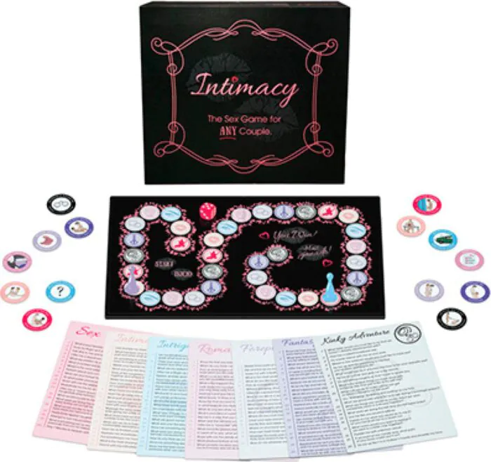 Prozkoumejte svojí intimitu zábavným způsobem prostřednictvím hry INTIMACY. Tento herní set obsahuje otázky a erotické aktivity, které pomohou prohloubit vaši vazbu. Zahrnuje herní plán, kostku, žetony a karty s otázkami v sedmi různých kategoriích, což přináší širokou škálu interakcí a zážitků.