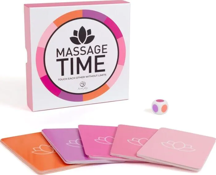 Prožitky vzrušení a relaxace se spojí díky hrám pro páry Secret Play Massage Time. Hra obsahuje 50 karet a barevný kostku, které vás navedou k různým masážním technikám, obohatených použitím masážního oleje nebo svíček pro dokonalou atmosféru.