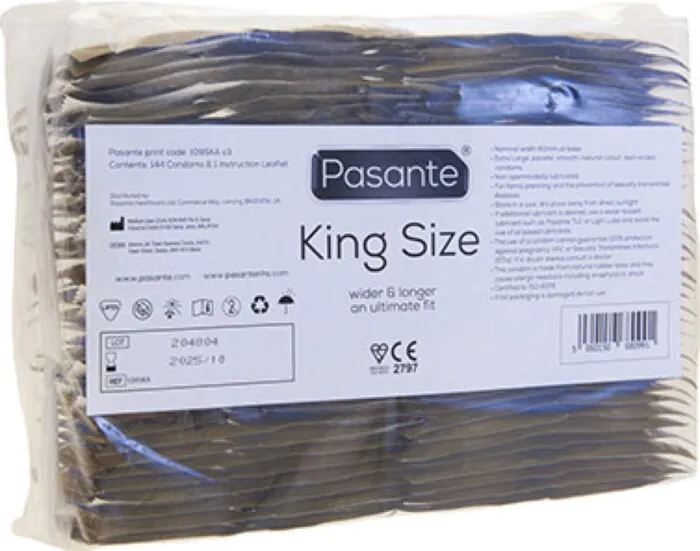 Kondom Pasante King Size je navržen pro ty, kdo potřebují více prostoru. S šířkou 60 mm poskytuje značnou pohodlnost při použití. Vhodný pro uživatele, kteří hledají pohodlí bez kompromisů.