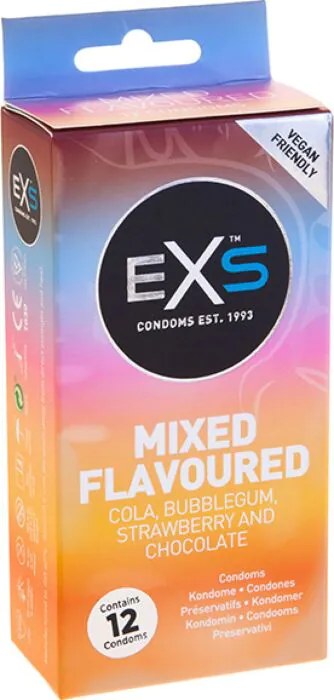 Zábava a chuť se snoubí s kondomy Exs Mixed Flavours, které nabízí různé chutě jako čokoláda, cola, jahoda a žvýkačka. Vyrobeny z přírodního latexu a mají anatomický tvar, což zajišťuje pohodlí a bezpečnost během použití.