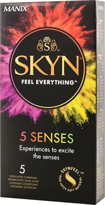 Intimní zážitek s kondomy Manix 5 Senses je jako pocit kůže s pokožkou díky unikátnímu sensoprenovému materiálu, který je bez latexu. Tento balíček nabízí rozmanité chutě a vzrušující efekty, jako je chladivý Skyn Cool nebo hřejivý Skyn Hot, takže si můžete vychutnat každou chvíli bez kompromisů a obav.
