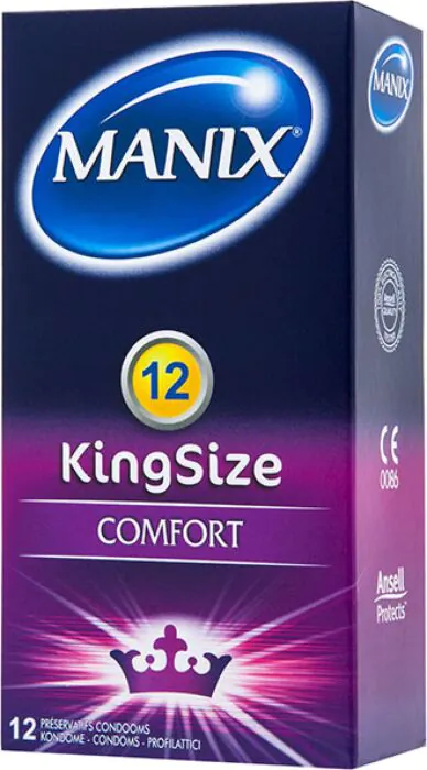 Širší a pohodlnější kondomy pro ty, kteří hledají větší prostor. Manix King Size s průměrem 56 mm a anatomickým tvarem poskytují ideální fit, zatímco jemná vanilková vůně přidává na přitažlivosti. Jsou lubrikované a mají rezervoár pro dodatečnou ochranu.