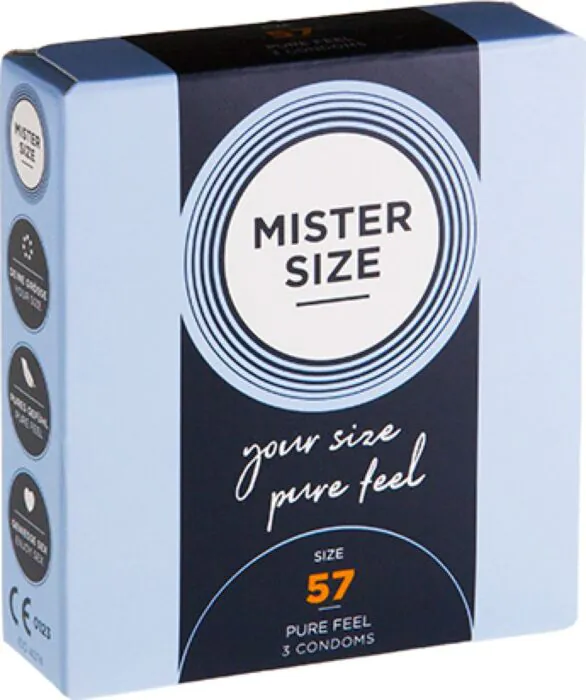 Maximální pohodlí a přirozený pocit s kondomy MISTER SIZE. Jejich ultra tenký design 0,05 mm z přírodního latexu přináší čistou intenzitu, díky které zapomenete na to, že nosíte kondom. S šířkou 57 mm se perfektně přizpůsobí a umožní vám a vaší partnerce soustředit se na vzájemné potěšení bez rozptýlení.