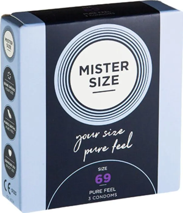 Pohodlné a bezpečné nošení s kondomy MISTER SIZE XXXL, které mají šířku 69 mm a tloušťku pouze 0,05 mm, což zaručuje intenzivní pocit. Vyrobeny z přírodního latexu, zajišťují přirozenou a příjemnou zkušenost během používání.