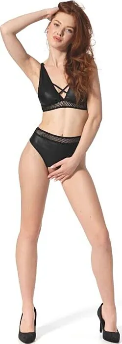 Redefinujte svou sensualitu se sadou KRISTEEN, soupravou spodního prádla, která kombinuje podprsenku a tanga s otevřeným rozkrokem. Vyrobeno z 60% polyuretanu a 40% polyesteru, nabízí lesklý povrch a jemnou texturu, která se dokonale přizpůsobí vašemu tělu, poskytující pocit pohodlí a elegance.