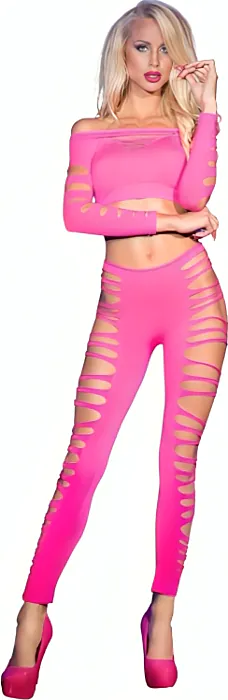 Sada, která vyzařuje pohodlí a svůdnost díky strategicky umístěným otvorům. Tento top a legíny od Chilirose, vyrobené z měkkého nylonového a elastanového materiálu, se přizpůsobí vaší postavě, poskytují svobodu pohybu a dotek sensuality.