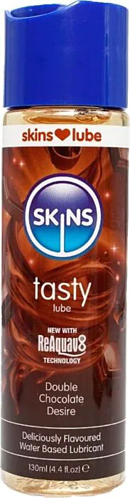 Sladká chuť Dvojité Čokolády v lubrikantu, který dokonale ozvláštní tvé intimní chvíle. Díky technologii Skins Reaquav8 stačí malý dotek vody nebo olíznutí, abys obnovila hladkost a kluznost. Veganská formule, která se snadno čistí, je ideální volbou pro každého, kdo si chce užít chuť s jistotou, že tento lubrikant nezanechá skvrny.