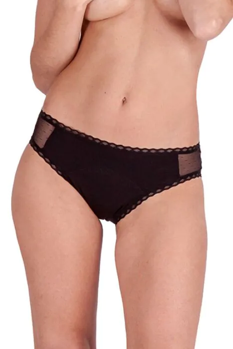 Menstruační kalhotky s bederním zpevněním, ideální pro denní nošení. Umožňují komfort a ochranu při lehkých až středních únikách.