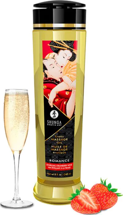 Olej na masáž Shunga Romance přináší smyslnou masáž za pomoci přírodních olejů, které se snadno roztírají po pokožce a nezanechávají mastný film. Vůně jahod s hladkým dotekem dává vynikající zážitek a stimuluje smysly. Tento produkt je dermatologicky testován a je bezpečný pro všechny typy pleti.