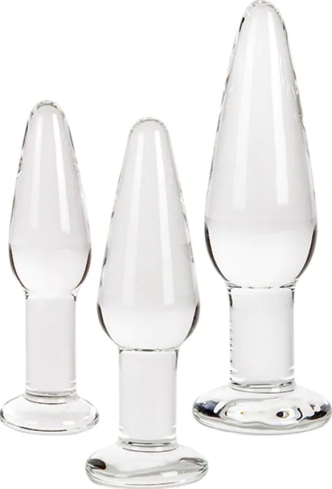 Tento set tří analních plugů z odolného skla je navržen pro postupnou stimulaci. Perfektní pro začátečníky, kteří chtějí objevovat nové pocity.