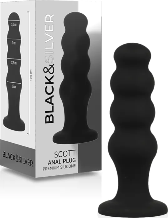 Plug anal BLACK&SILVER Scott nabízí jemné a příjemné zkušenosti. Díky průměru 3,5 cm je pohodlný pro většinu uživatelů a silikonový povrch zajišťuje rychlou akumulaci tělesného tepla.
