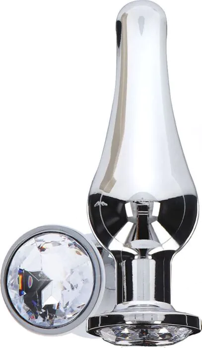 Elegantní anální plug s diamantovou ozdobou, ideální pro pokročilé hráče. Kvalitní hliník bez niklu a snadná údržba.