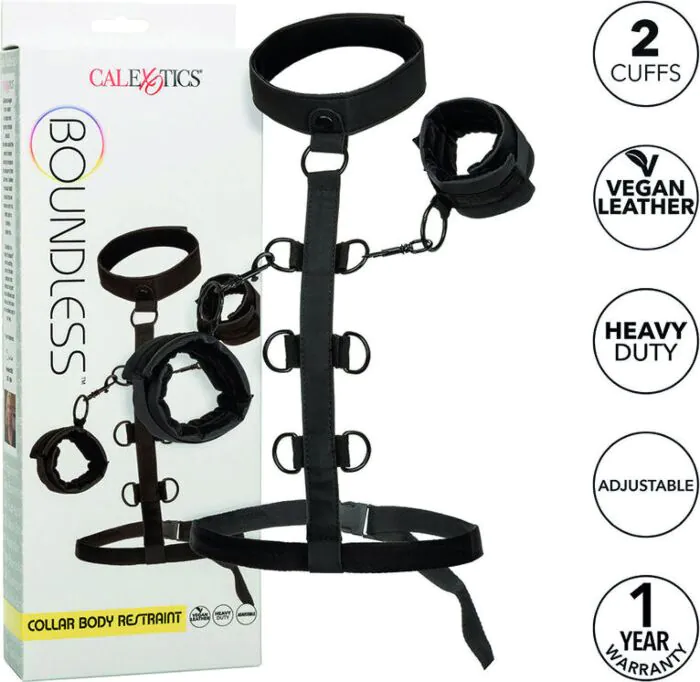 Postroj CALEXOTICS Boundless přináší pohodlí a variabilitu pro milovníky bondage. S jeho odnímatelnými pouty si lze užít nezávislé explorace v luxusním designu z veganské kůže.