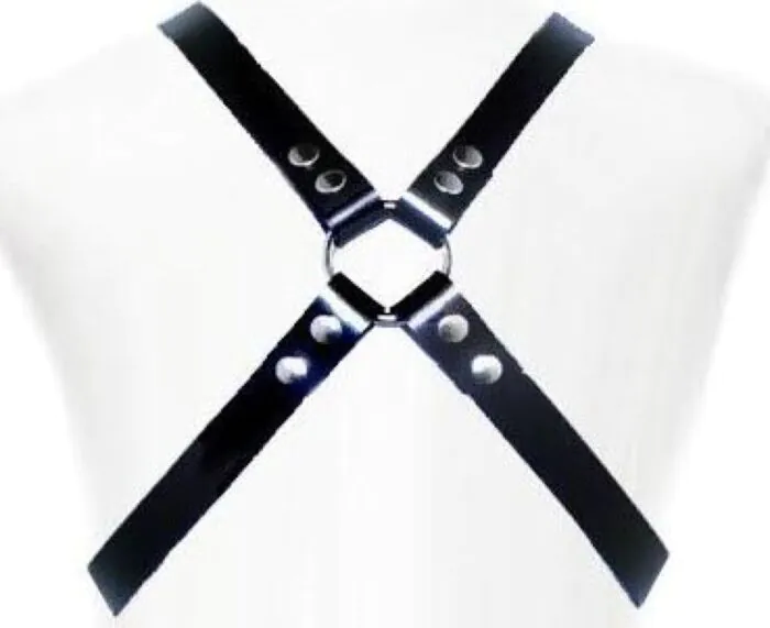 Postroj z kvalitního kůže pro muže, který umožňuje přizpůsobení různým tělesným typům. Ideální pro objevování BDSM s pohodlným a bezpečným pocitem.