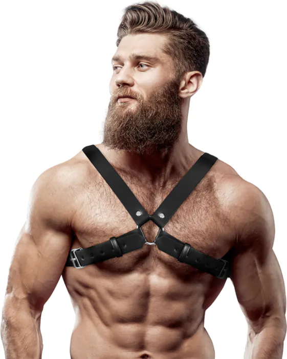Postroj s nastavitelným designem, vyrobený z kvalitní veganské kůže pro zvýšení vaší mužské postavy. Ideální pro každého, kdo chce přidat špetku stylu do svého vzhledu.