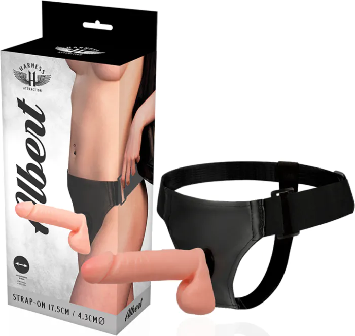 Realistický zážitek s postrojem Albert, který zahrnuje penis z TPR o rozměrech 17,5 x 4,3 cm. Ergonomický design zajišťuje, že postroj zůstane na svém místě, takže se můžete plně soustředit na vaše touhy. Systém Harness Click umožňuje snadnou výměnu mezi různými penisy a dongs, což otevírá široké možnosti pro vaše erotické hry.
