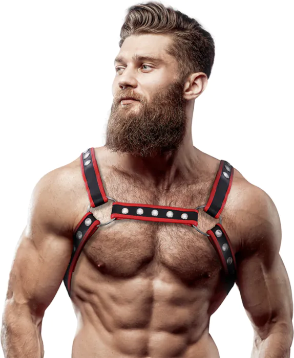 Postroj z veganské kůže, který zdůrazňuje vaši mužnost a zajišťuje pohodlné nošení. Nastavitelný pro různé postavy, ideální pro show nebo doma.