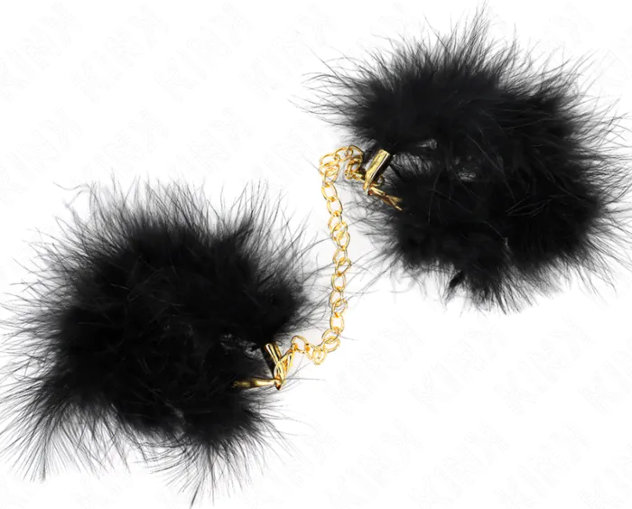 Elegantní pouta s peřím a zlatým řetízkem pro pohodlné a vzrušující zážitky. Vyrobeny z kvalitního kovu, zajišťují potřebnou odolnost pro exploraci tvých nejodvážnějších fantazií.