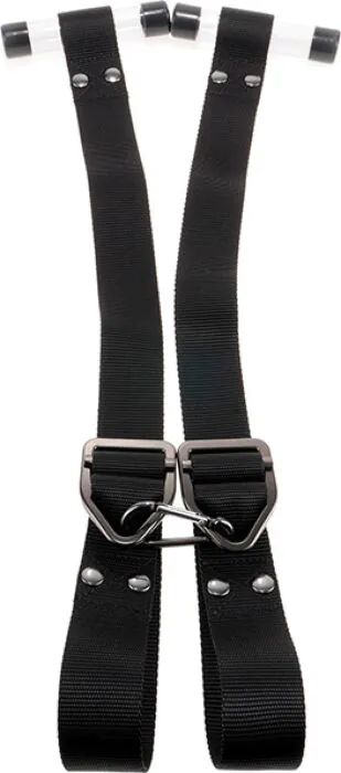 Pouta jednoduše upevněte na horní část dveří a zajistěte zavření. Ujistěte se, že jsou pevně držena, než začnete. Jsou plně nastavitelné, proto je snadné je přizpůsobit. Doporučujeme používat lubrikant na vodní bázi při kombinaci s jinými hračkami.