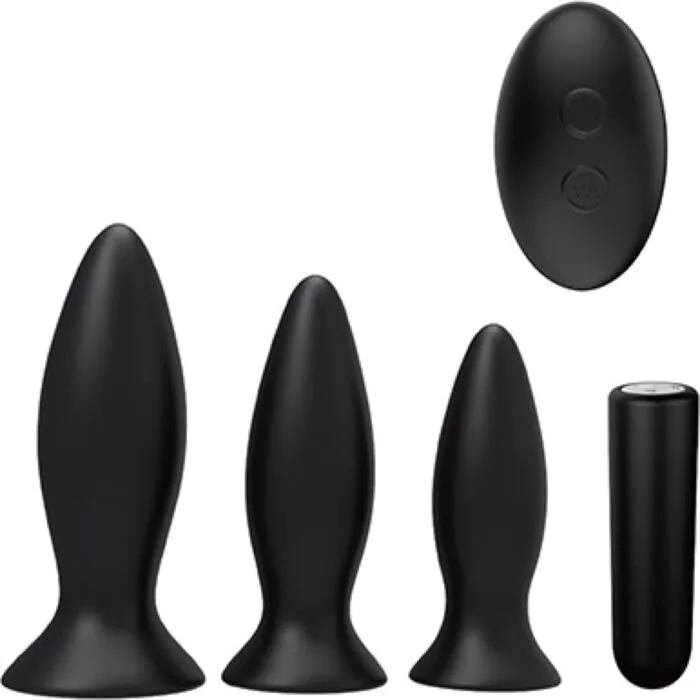 Sada obsahuje tři různé velikosti plugů a vibrátor pro postupnou analní stimulaci. Ideální pro začátečníky a ty, kteří vyhledávají komfort.