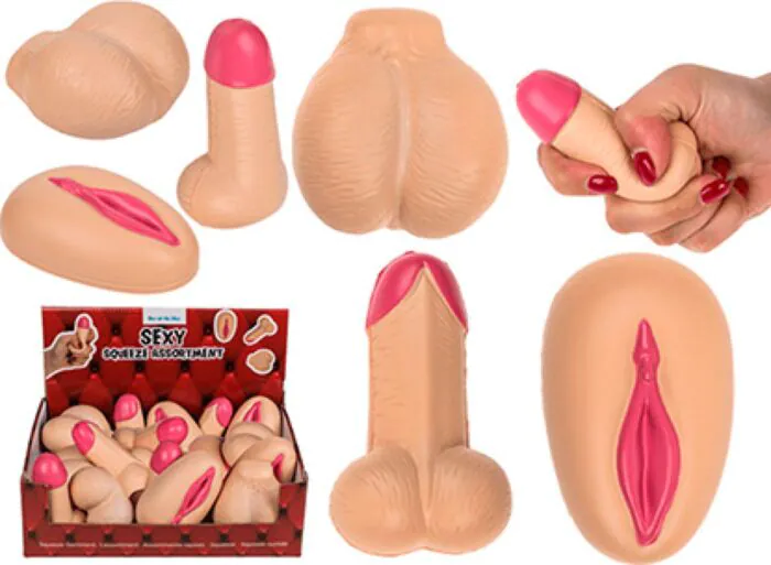 Uvolnění stresu a povzbuzující zábava s realistickými tvary. Sada Squeeze Surtido obsahuje 12 kousků (4 penis, 4 vulvy, 4 varlata), které jsou lehce stlačitelné a snadno přenosné.