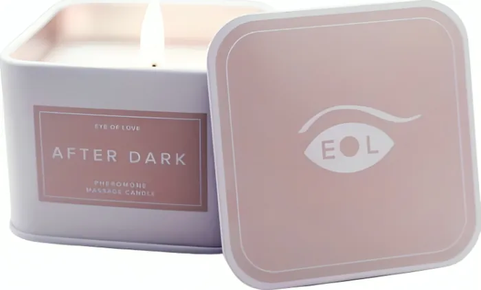 Vytváření smyslného prostředí s vůní a hřejivými oleji. Vonná svíčka Eye of Love After Dark se při zapálení mění na teplý masážní olej, který hydratuje pokožku a poskytuje jedinečný zážitek. Složení z kvalitního bambuckého másla a feromonů zvyšuje atraktivitu a vzbuzuje touhu.